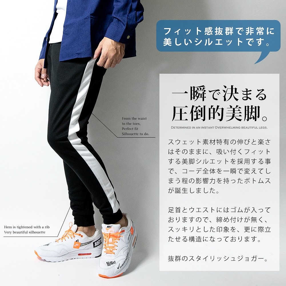 ラインパンツ スウェットパンツ 全6色 ストレッチ ジョガーパンツ サイドライン スウェット ライン スリム