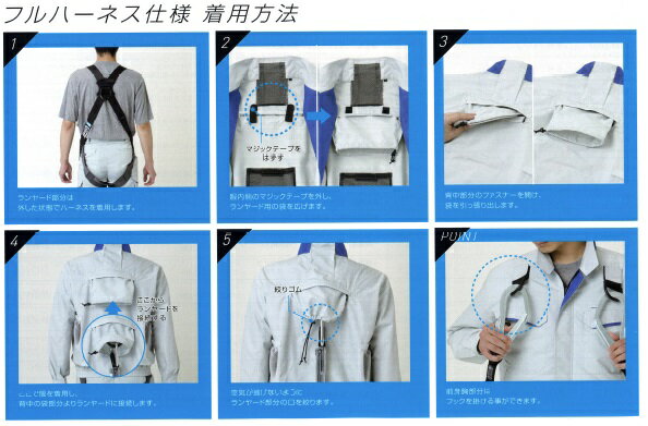 通常、空調風神服の上からフルハーネスを装着すると、締め付けにより服の中に十分に風が巡らなくなります。